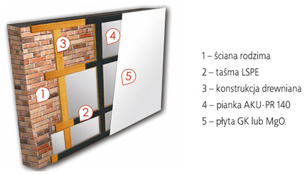 Rys. 2. Przekrój przez ścianę izolowaną AKU-PR z użyciem stelaża