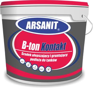 B-ton Kontakt firmy ARSANIT to środek gruntujący pod tynki gipsowe oraz cementowo-wapienne. Stosowany jest do podłoży o dużym zagęszczeniu i małej chłonności, takich jak np. gładkie powierzchnie betonowe. Preparat na mieszaninie dyspersji polimerowych, specjalistycznych domieszek modyfikujących oraz kwarcowych i wapiennych wypełniaczy (które nie zmniejszają paroprzepuszczalności), wzmacnia podłoże i wyrównuje jego chłonność.