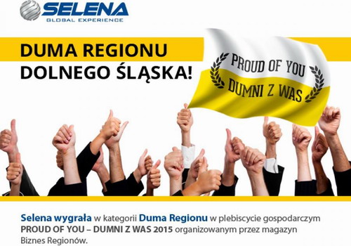 Selena - producent i dystrybutor chemii budowlanej z centralą we Wrocławiu - wygrała w kategorii Duma Regionu w plebiscycie gospodarczym PROUD OF YOU - DUMNI Z WAS 2015 organizowanym przez magazyn Biznes Regionów.