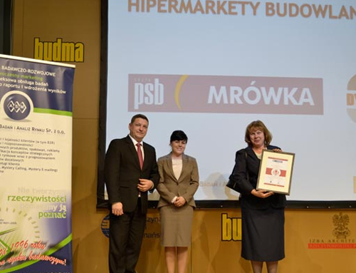 Marzena Krzakowska z Grupy Polskie Składy Budowlane SA odebrała dyplomy Grand Dystrybutor Roku 2014 przyznane hipermarketom DIY PSB oraz sieciom sprzedażowym PSB - Mrówka i Profi.
