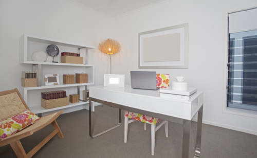 Niezwykle istotnym elementem aranżacji domowego biura są kolory. Otaczające nas barwy wpływają na nasze samopoczucie - mogą poprawiać komfort pracy, pomagać w skupieniu bądź zwiększać nasze kreatywne możliwości. Twórczym zadaniom sprzyjać będą oranże i czerwienie; żółcienie wzmocnią koncentrację i logiczne myślenie; niebieskości i zielenie uspokajają i inspirują. Wybierając kolory, pamiętajmy o uwzględnieniu charakteru naszej pracy, ale też o osobistych preferencjach.