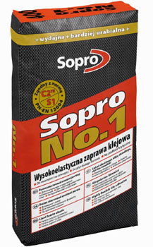 No.1 to prawdziwy "czarny koń" w stajni produktów Sopro. Obok jego najważniejszej zalety - wysokiej wydajności - przy pomocy worka 25 kg można cienkowarstwowo przykleić blisko 35% więcej