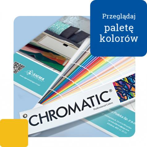 Wzornik kolorów Chromatic to rozwiązanie dla osób planujących wykończenie ścian wewnętrznych, zewnętrznych lub elementów wyposażenia, takich jak meble, stolarka drzwiowa i okienna, farbami marki Dekoral Professional i Sigma Coatings. Znajduje się w nim aż 1170 kolorów. Wzornik pomoże dopasować odpowiedni odcień i zobaczyć, jak będzie zachowywał się w danym pomieszczeniu.
