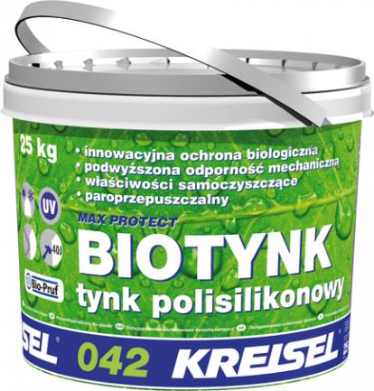 Systemy ociepleń oraz tynki ewoluują w kierunku podwyższenia odporności na korozję biologiczną. Osiągniecie takiego rezultatu możliwe jest dzięki zastosowaniu innowacyjnego tynku cienkowarstwowego BIOTYNK 042. Takie nowatorskie podejście pozwoliło na uzyskanie najwyższej wytrzymałości na uderzenia. Wysoką odporność na działanie alg, glonów i grzybów pleśniowych osiągnięto poprzez niepowtarzalny system Bio-Pruf i mikrokapsułowanie biocydu. Dzięki temu substancje czynne uwalniane są w dużo dłuższym okresie niż w tradycyjnych rozwiązaniach, tym samym tynk jest kilkukrotnie bardziej odporny na niszczące go czynniki. Odporność biologiczną podnoszą właściwości samoczyszczące tynku związane z jednym głównych składników tynku czyli żywicami silikonowymi.
