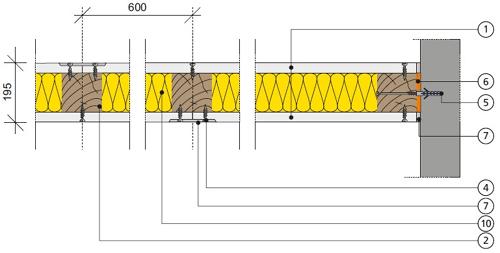 Przykładowa ściana działowa na konstrukcji drewnianej z pojedynczym poszyciem płytą gipsowo-kartonową Rigips gr. 12,5 mm