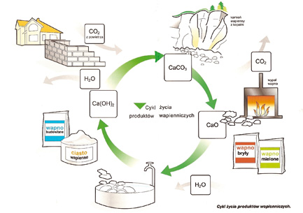 Wapno oferuje użytkownikom zdecydowanie więcej niż można by się spodziewać. Po pierwsze: tynki na nim oparte są uniwersalne, trwałe, odporne na działanie czynników biologicznych. Po drugie: jest ono produktem w pełni naturalnym. W procesie jego wytwarzania wykorzystuje się ciepło do przekształcenia skały wapiennej CaCO3 w wapno palone oraz wodę do zamiany wapna palonego w wodorotlenek wapnia. Zarówno w tynkach zewnętrznych, jak i wewnętrznych, następuje wiązanie CO2 z atmosfery, co powoduje przekształcenie wodorotlenku wapnia z powrotem w CaCO3. (ryc. 1) Pochodną tego procesu jest efekt samozabliźniania się tynku, jeśli w jego strukturze pojawiły się mikropęknięcia. Zjawisko to jest niezmiernie ważne z punktu widzenia użytkownika, gdyż tynki zewnętrzne to nie tylko dekoracja domu, ale przede wszystkim ochrona konstrukcji murowych przed zgubnym oddziaływaniem wody. Ponadto wapno powoduje, że utwardzone tynki są elastyczne, zdolne do odkształceń i pracują wraz z podłożem.