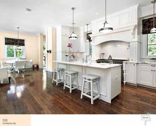 Obecnie, prawie 200 lat od panowania królowej Wiktorii, dworski styl, który ją otaczał, nie przestaje kusić projektantów wnętrz, a tym samym nie odchodzi w zapomnienie, dumnie uświetniając wnętrza XXI-wiecznych domów. Wprowadź jego elementy do swojej kuchnio-jadalni, dzięki zdobionych drewnianym meblom i ciemnemu, drewnianemu parkietowi. Zobacz, jak dobrze w ich towarzystwie wygląda duży fotel z białej skóry. Lubisz wnętrza z odrobiną romantyzmu? My również, dlatego tak jak my pomaluj ściany farbą Śnieżka Satynowa w kolorze 508 Romantyczny Rejs.