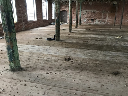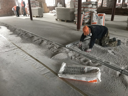 "Pierwszym etapem, od którego rozpoczęliśmy, były roboty rozbiórkowe" - wspomina project manager firmy San Bud. - Czyściliśmy więc posadzki z polepy (popiół i wióry drzewne z piachem i gliną), zbijaliśmy tynki, demontowaliśmy okna. Takie czyszczenie budynku do zera. Następnie ekipa zajęła się zabezpieczeniami ogniowymi na podłogach i sufitach.