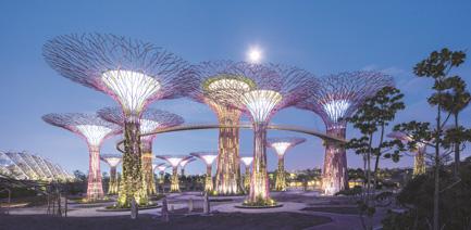 Teren parku wyposażonego w Podniebny Las i Katedry Kwiatów oraz 18 gigantycznych stalowych drzew jest atrakcją turystyczną Singapuru. Stalowe super drzewa o wysokości od 25 do 50 m stanowią podstawę pod różne rośliny.